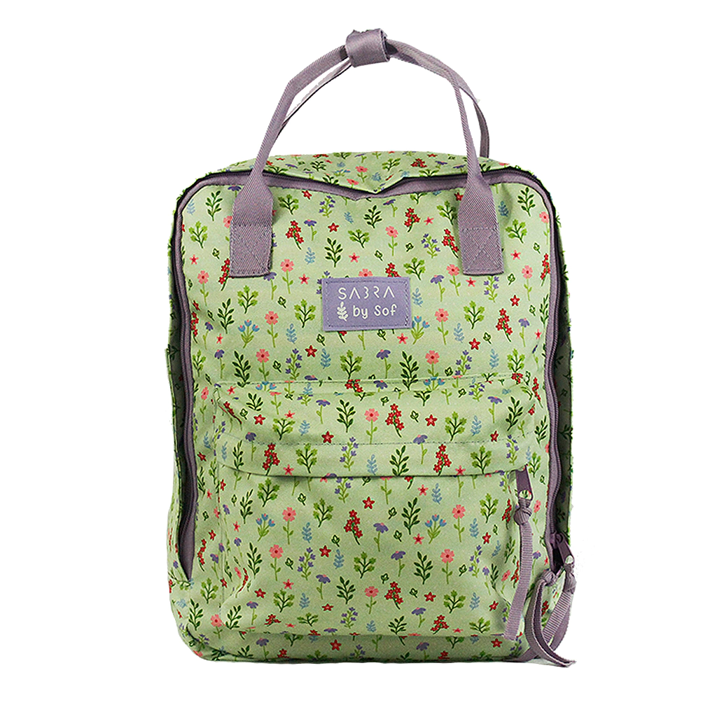 Apresentamos a Mochila Quadrada By Sof, um modelo que se destaca pela sua forma elegante e funcionalidade incomparável. Ideal para quem busca praticidade sem abrir mão do estilo, essa mochila é perfeita para estudantes e profissionais que precisam de organização e espaço. A estampa lilac fields verde, co-criada entre Sabra e Sof Martins, adiciona um toque de sofisticação e personalidade única.